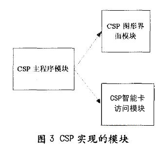 將CSP的實(shí)現(xiàn)分為3個(gè)模塊:CSP主程序模塊、CSP圖形界面模塊、CSP智能卡訪問模塊